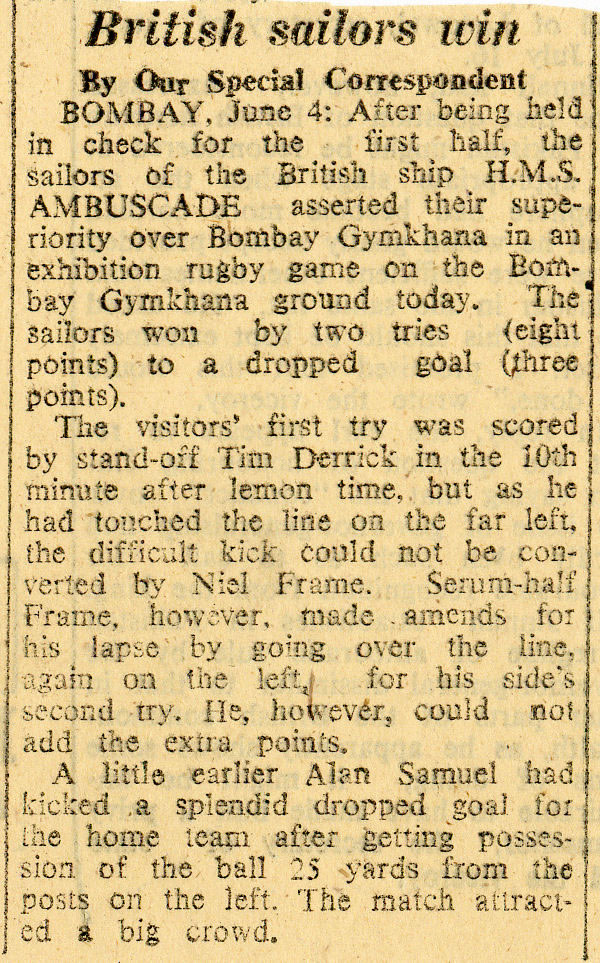 Sam Potts Gallery 1983 Bombay report of Ambuscade Rugby game Previous | Home | Next