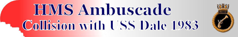 Both ships attempted to correct this at the same time and as a result HMS AMBUSCADE collided with the much larger USS DALE CG19, resulting in serious damage to the Ambuscade's bow and minor damage to USS Dale.