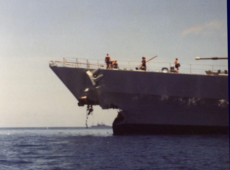 On the sunny morning of 27th April 1983, in the Arabian Sea/Indian Ocean near the Gulf of Oman, there was a miscalculation during a series of ship manoeuvres which led to HMS Ambuscade and USS Dale being the wrong distance apart. The ships had changed from Diamond Formation to a Loose line or Column.