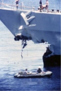 The USN offered help and their Sea King Helicopter managed to blow our Flight Deck Officer (Master At Arms Phil Hudson) overboard with it's rotor down-rush whilst hovering over the flight deck.