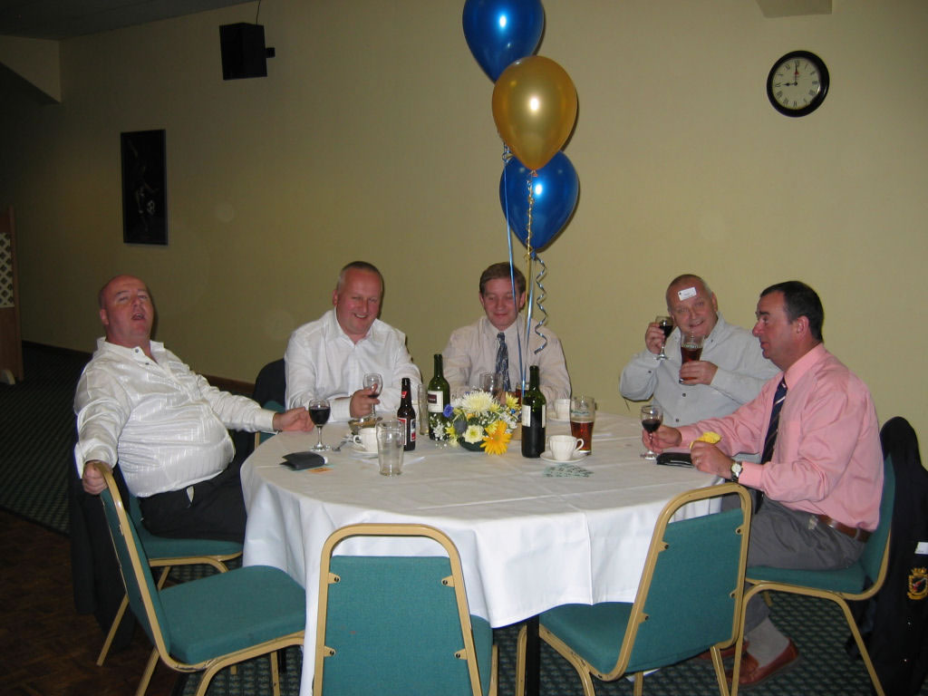 2007 Reunion Crewe Reunion evening at Crewe FC Stadium from left- Bill Baily/Geoff Collison/Brian Burrows/Paul Cousens/Joe Mulgrew photo © S.Griffin Previous | Home | Next