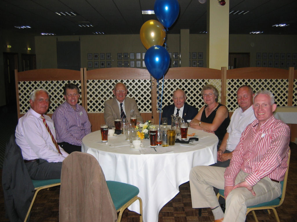 2007 Reunion Crewe Reunion evening at Crewe FC Stadium L-R Specisl guest Ron Goodwin (Cheshire Regiment)/Ian Thoburn/Henry Curry/Edwin sadler(Honorary vice President)/Chris & Ray taylor/Mark Brocklehurst photo © S.Griffin Previous | Home | Next