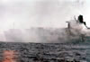 MV Atlantic Conveyor after Exocet hit 1982 |