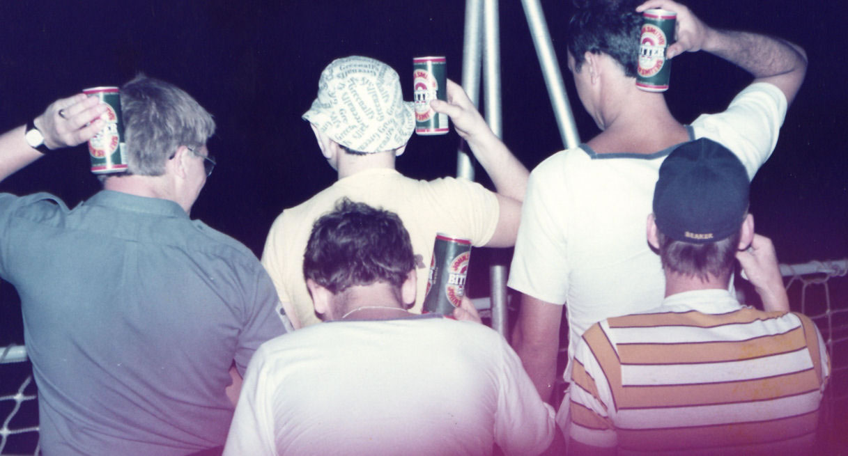 Unwinding on the flightdeck Midnight drinking club - April 1983 Photo©AndrewBaker Previous | Home | Next