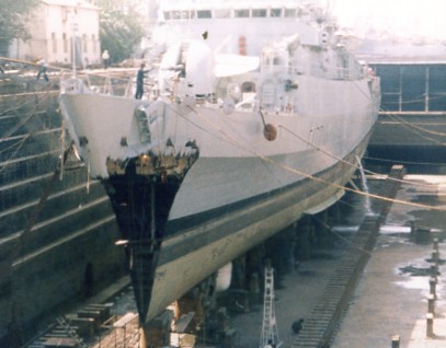 img267.jpg - HMS Ambuscade being repaired in Mazagon Dry Docks in Bombay May 1983