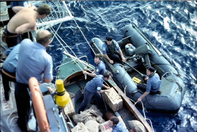 My Ambuscade Album Cdr PJ Mosse Gemini replenishing S/M ONYX Ascension Island 11th May 1982 photo ©Peter Mosse Previous | Home | Next