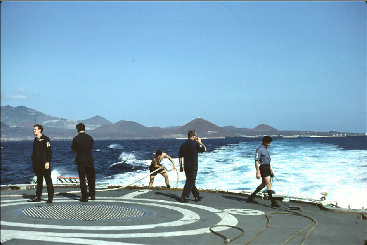 My Ambuscade Album Cdr PJ Mosse Leaving Ascension Island after disembarking (42 commando) M Coy Royal Marines 15th July 1982 photo ©Peter Mosse Previous | Home | Next