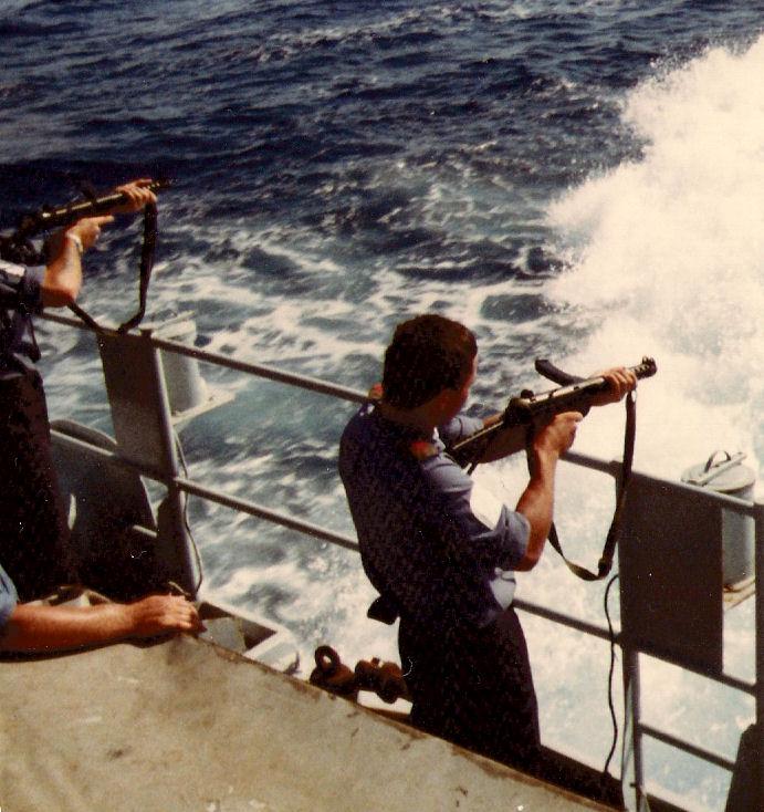 SMG firing training for boarding party for anti pirate boarding party photo©Steve Griffin