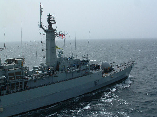 PNS Tariq Gulf May 2005 'Bungy' RFA Bayleaf "on the break off from the RAS, Tariq hoisted the White Ensign, so it was good to see a 21 under the white ensign again. " Previous | Home | Next