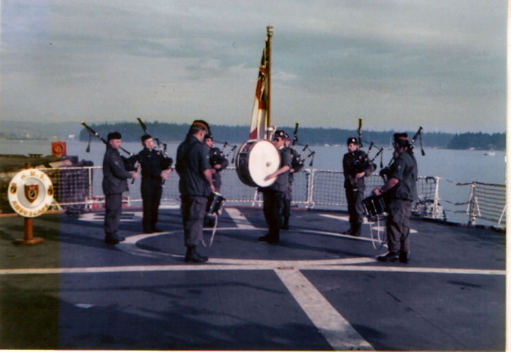 Visiting pipe band at Nanaimo Canada photo supplied by Michael Gretton (Capt 1978-1980) Previous | Home | Next