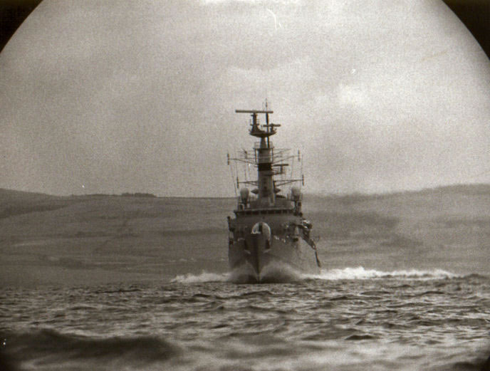 Periscope photo of Ambuscade during 'Perisher Running' Submarine Commanding Officer training off west coast of Scotland 13 Mar -17 Apr 1979 photo supplied by Michael Gretton (Capt 1978-1980) Previous | Home | Next