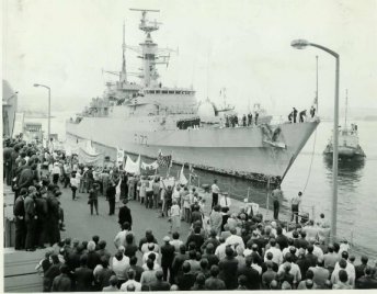 ![]() Newspaper cutting of HMS Ambuscade's return from the war |