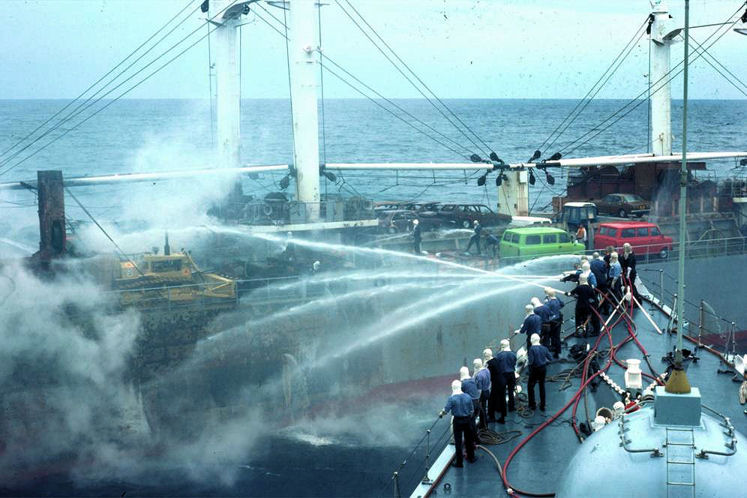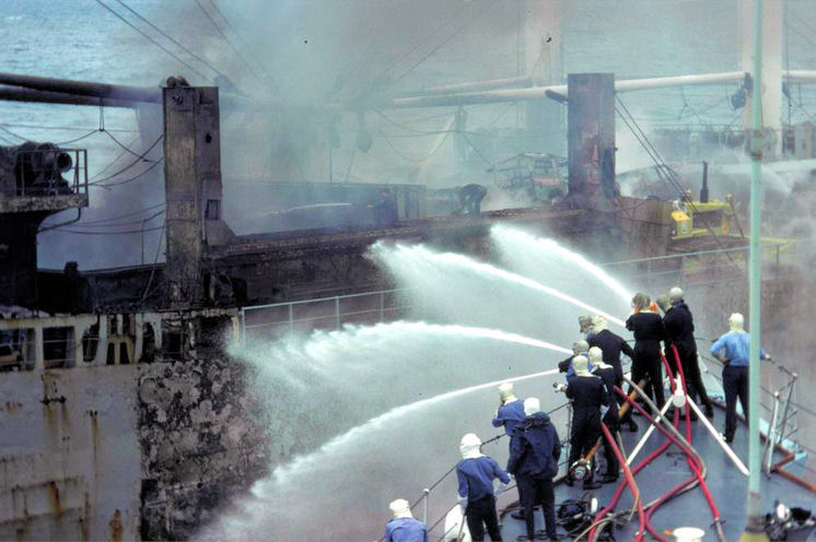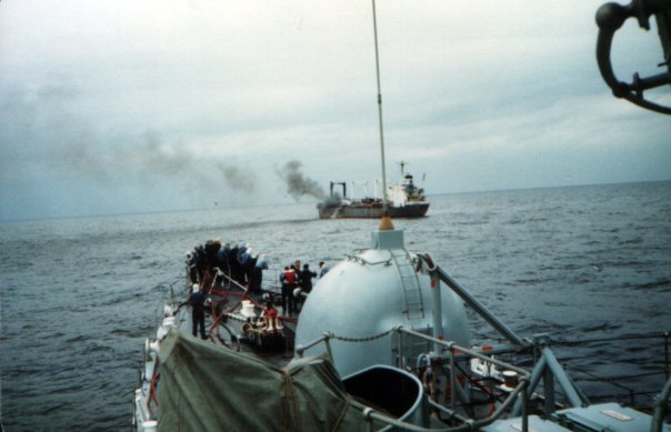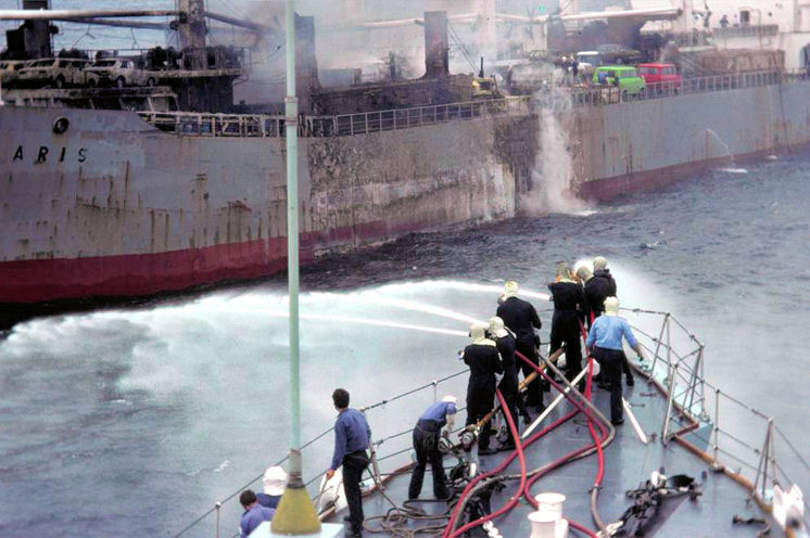 February 1982 HMS Ambuscade went to the aid of MV Aris which was on fire in