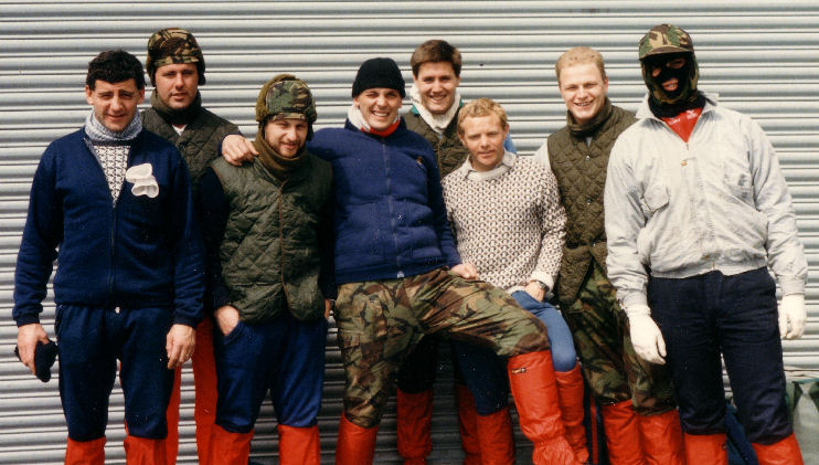 the lads who walked across the West Falklands ( or rather half way due to bad weather) to raise money for telethon . ©Tudor Weeks Left to Right LCK ?, L/S Mary Whitehouse, L/S Richie , ME , ?, PTI Dave Willets,, MEM Paul Edwards……and the guy in the mask…WEM(O) Partel… | ||||||||