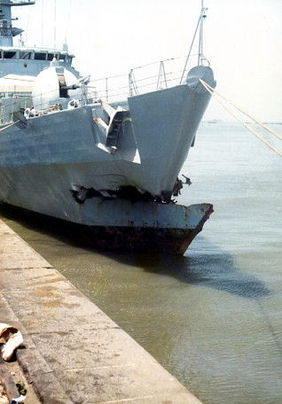 Alongside Bombay (now Mumbai) after 1983 collision with USS Dale